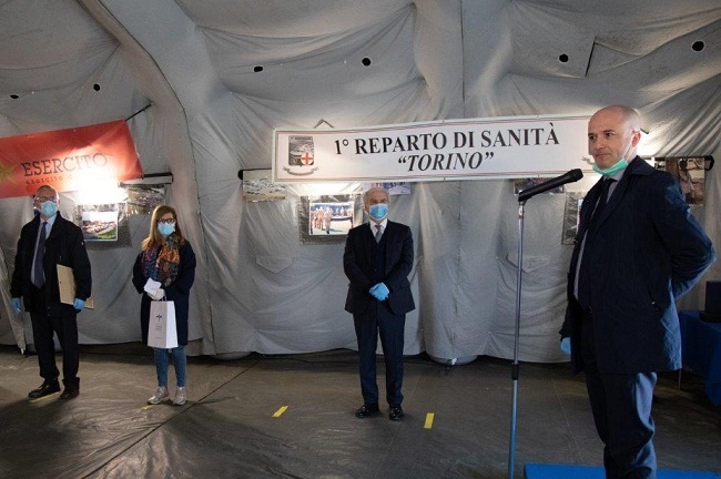 Il sottosegretario Baruffi: “Qui per dire grazie alle donne e agli uomini dell’Esercito. Allestito un mese fa in tempi record a ridosso dell’ospedale cittadino