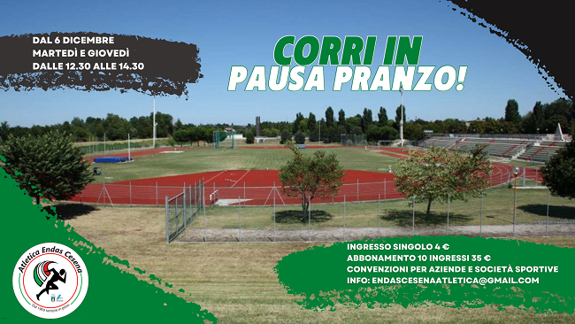 CESENA – Nell’attesa dei lavori di rinnovamento dell’impianto previsti per l’anno prossimo, l’Atletica Endas, gestore della struttura, torna a proporre una delle iniziative nate in epoca prepandemia che avevano riscosso maggior successo fra i cesenati: “Corri in pausa pranzo!”, l’apertura al pubblico della pista di atletica anche nell’intervallo lavorativo di metà giornata.