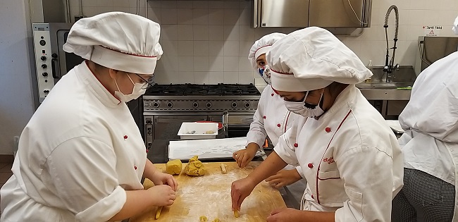 Per la classe di pasticceria è prevista una lezione dimostrativa sulla preparazione di una torta moderna con la richiesta agli studenti di replicare lo stesso dolce con Antonello di Maria, docente pasticcere nella scuola di Colorno.