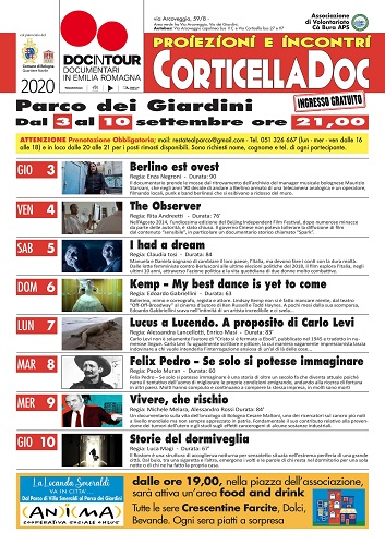BOLOGNA – Da giovedì 3 settembre al Parco dei Giardini di Corticella torna per 8 serate il meglio della produzione documentaristica dell’Emilia-Romagna. L’edizione 2020 di CorticellaDoc propone un ciclo di 8 incontri con proiezione, ogni sera dalle 21 fino al 10 settembre, in cui saranno proposti altrettanti documentari che raccontano storie, mondi, esperienze collegate al territorio o nate in regione.