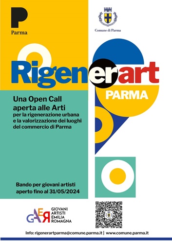 PARMA – Pubblicato il 20 marzo l’avviso pubblico “RigenERart_Parma”, il cui obiettivo è valorizzare gli spazi cittadini anche dal punto di vista commerciale attraverso le opere di giovani artisti. Il concorso di idee, promosso dal Comune di Parma e GAER – Giovani Artisti Emilia Romagna, prevede un investimento di 100.000€ per il finanziamento di un massimo di sei progetti. I giovani artisti sono in questo modo resi protagonisti della riqualificazione degli spazi urbani, in un significativo processo di caratterizzazione culturale di Parma e dei suoi quartieri.