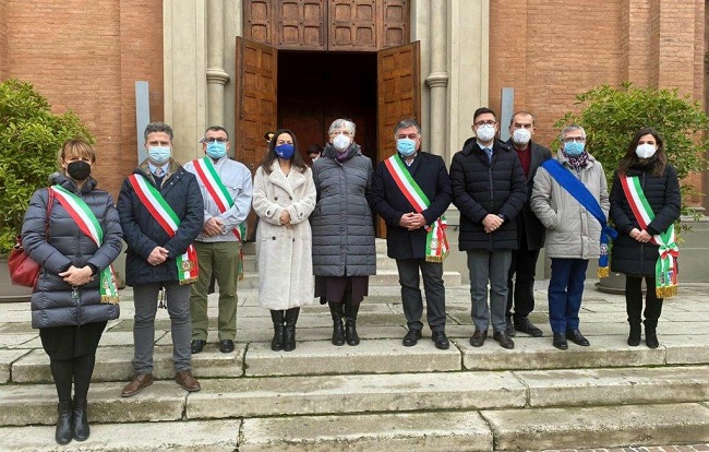 Foto 1: Assessore Priolo coi sindaci per anniversario incidente Crevalcore