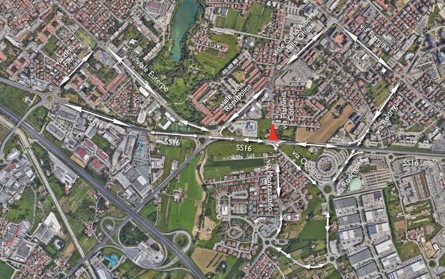 In direzione mare monte, coloro che provengono dalla città e dal mare, per dirigersi su via Montescudo e Coriano, dovranno utilizzare via Flaminia e poi Via Edelweiss Rodriguez Senior e via Coriano, per commettersi a via Montescudo tramite via Tirso. In alternativa potranno utilizzare via della Repubblica, via Euterpe, via della Fiera e ritornare in direzione Montescudo/ Coriano tramite la SS16.