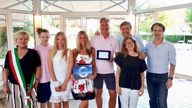 Nei giorni precedenti un altro riconoscimento presso l’Hotel President gestito da dalle famiglie Cecchini e Selva. Tra l’altro Maurizio Cecchini, in passato, era stato a capo dell’Associazione albergatori cattolichina. Una doppia occasione di festa perché si festeggiavano i 20 anni di vacanza a Cattolica ma anche il ventesimo anniversario di matrimonio della famiglia Harris. “Assieme all’Amministrazione Comunale – spiegano dall’Hotel President – abbiamo pensato di consegnare a questi ospiti provenienti dall’Inghilterra una targa ricordo per fargli sentire l’affetto e l’amicizia della nostra comunità”.