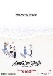 Le multisala che proietteranno EVANGELION 3.0+1.01 – Thrice Upon a Time dal 12 al 14 settembre alle 18.30 e alle 21.00 sono UCI Bicocca (MI), UCI Luxe Campi Bisenzio (FI), UCI Casoria (NA), UCI Montano Lucino (CO), UCI Firenze (FI), UCI Fiumara (GE), UCI Lissone (MB), UCI Cinepolis Marcianise (CE), UCI Luxe Marcon (VE), UCI Molfetta (BA), UCI Moncalieri (TO), UCI Orio (BG), UCI Parco Leonardo (RM), UCI Porta di Roma (RM), UCI Reggio Emilia (RE), UCI Romagna Savignano sul Rubicone (FC), UCI RomaEst (RM), UCI Torino Lingotto (TO), UCI Verona (VR).