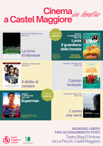 CASTEL MAGGIORE (BO) – Sei nuove proiezioni in programma dal 19 febbraio al 23 aprile, pensate per accompagnare il pubblico durante i mesi invernali e primaverili e offrire occasioni di incontro e condivisione negli spazi culturali della città.
