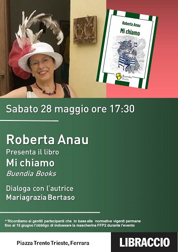 FERRARA – Sabato 28 maggio alle ore 17.30 Roberta Anau tornerà a Ferrara, al Libraccio di piazza Trento-Trieste, per presentare Mi chiamo, la sua nuova raccolta di racconti!Il mio cervello è una formazione stratigrafica che ha subito ripiegamenti tellurici, terremoti più o meno lievi ma confusionari, e tutto si è mescolato.