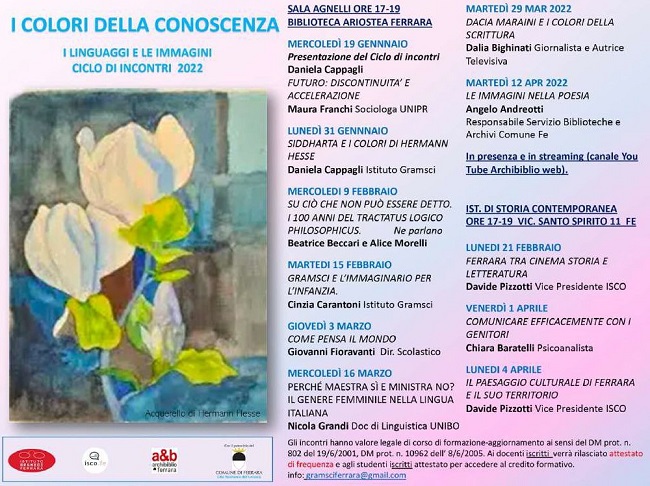 L’incontro rientra nel ciclo di appuntamenti ‘I colori della conoscenza. I linguaggi e le immagini’, a cura dell’Istituto Gramsci e dell’Istituto di Storia Contemporanea di Ferrara.