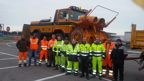 Sono partiti stanotte per Santa Vittoria in Matenano, provincia di Fermo, quattro operatori stradali della Provincia, due frese e due camion di due ditte del Parmense, per portare soccorso alle popolazioni