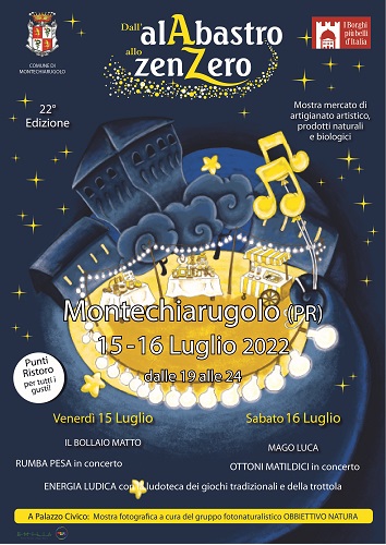 MONTECHIARUGOLO (PR) – Nel suggestivo borgo medievale di Montechiarugolo venerdì 15 e sabato 16 luglio 2022, dalle 19 alle 24, torna la magica atmosfera della mostra mercato di artigianato artistico, prodotti naturali e biologici Dall’Alabastro allo Zenzero.