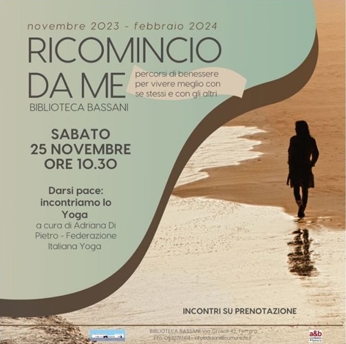 FERRARA – Per la rassegna “Ricomincio da me”, sabato 25 novembre 2023, alle 10.30, la biblioteca comunale Bassani (via Grosoli 42, Barco – Ferrara) ospiterà un incontro dedicato allo yoga dal titolo “Darsi pace”, a cura di Adriana Di Pietro (Federazione Italiana Yoga).