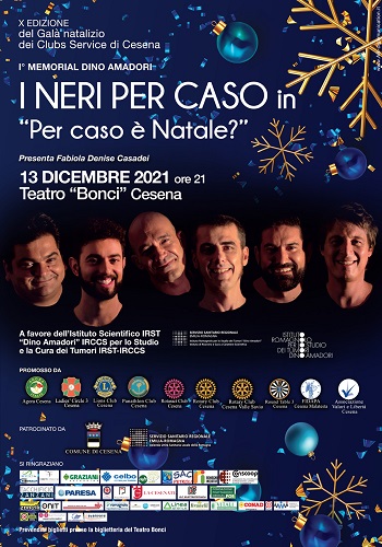 CESENA – Un concerto d’eccezione per il tradizionale Galà benefico dei Clubs Service cesenati. Saranno i Neri Per Caso, il gruppo a cappella più famoso d’Italia, i protagonisti della decima edizione dell’evento natalizio, con lo spettacolo “Per caso è Natale?” che si terrà lunedì 13 dicembre alle ore 21 al Teatro “Bonci” di Cesena.
