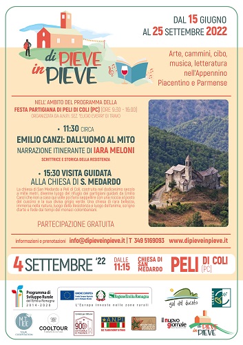 PIACENZA – Domenica 4 settembre, nell’ambito della Festa Partigiana di Peli di Coli (PC) organizzata dall’A.N.P.I. sezione di Travo, la rassegna «Di Pieve in Pieve» fa tappa alla chiesa di San Medardo con due iniziative culturali.