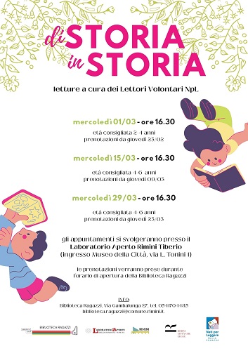 RIMINI – Riprendono nel mese di marzo i pomeriggi con le letture per bambini a cura dei lettori volontari della Biblioteca Gambalunga al Laboratorio Aperto Rimini Tiberio. Si parte mercoledì primo marzo e poi si prosegue, sempre il mercoledì pomeriggio, il 15 e infine il 29 marzo. La prenotazione è obbligatoria, l’età consigliata va dai 2 ai 6 anni