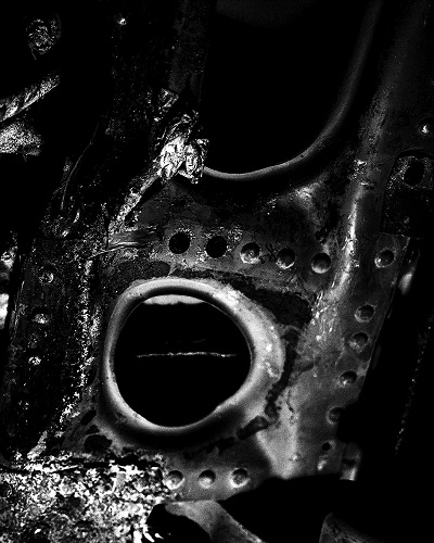 Tra i maggiori protagonisti della fotografia italiana, noto per una personalissima indagine tecnica e concettuale incentrata su un’eclettica sperimentazione del linguaggio delle immagini ottico-chimiche, Nino Migliori (Bologna, 1926) entra in contatto nel 2007 con le tracce spezzate del drammatico evento, poco tempo dopo che il relitto del velivolo, recuperato al largo dell’isola di Ustica, ha compiuto lo straziante percorso a ritroso che dall’aeroporto di Pratica di Mare lo ha riportato a Bologna. Mentre è ancora in corso di sviluppo il progetto museografico per trasformare gli ex magazzini dell’azienda di trasporti pubblici locali ATC nella sede del Museo per la Memoria di Ustica, poi inaugurato il 27 maggio 2007 con l’installazione permanente site specific A proposito di Ustica ideata da Christian Boltanski, Migliori ottiene l’autorizzazione per accedere al cantiere aperto e fotografare i resti dell’aereo non ancora ricomposto nella sua forma originaria intorno allo scheletro della fusoliera.