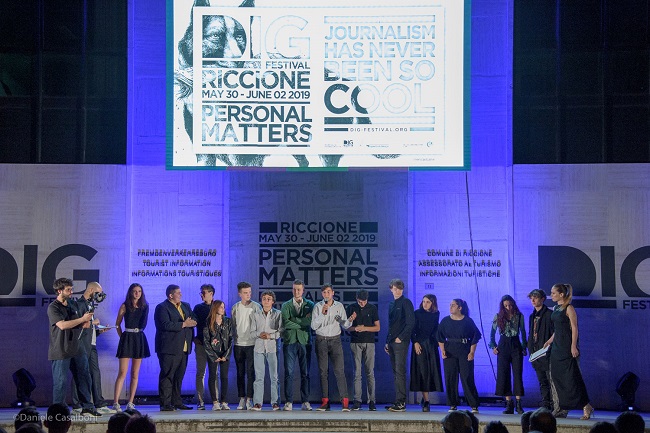 Sul palco di fronte al Palazzo del Turismo, nel centralissimo piazzale Ceccarini, cuore della manifestazione, Valerio Bassan, co-founder di DIG, insieme a Vanessa Villa, volto televisivo italiano, hanno assegnato sei DIG Awards distribuiti per altrettante categorie in concorso in questa rassegna internazionale dedicata al video giornalismo investigativo.