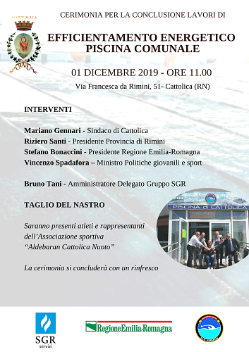Domenica 1 dicembre 2019 cerimonia di conclusione dei lavori di “EFFICIENTAMENTO ENERGETICO PISCINA COMUNALE DI CATTOLICA”