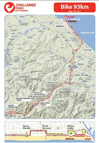 Sabato 6 maggio sarà dedicata alla Distanza Sprint con il V Triathlon “Città di Rimini” che vedrà al via i migliori specialisti italiani. La gara interesserà solo la zona mare riminese, più nello specifico la zona compresa tra piazzale Fellini e piazzale Gondar. Dopo la prima frazione di nuoto (tra la spiaggia libera e il bagno 8), è previsto un circuito da quattro giri in bicicletta tra piazzale Boscovich e piazzale Gondar, che si snoderà sul lungomare. La frazione di corsa invece prevede un circuito di tre giri che interesserà le vie attorno al Grand Hotel e piazzale Fellini. Resteranno percorribili Viale Vespucci direzione Riccione, viale Principe Amedeo in entrambi i sensi di marcia e via Destra del porto fino a viale Colombo.