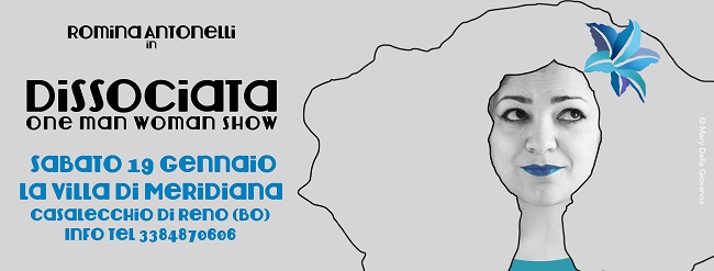 CASALECCHIO DI RENO (BO) – Sabato 19 gennaio al Centro Culturale La Villa di Meridiana di Casalecchio di Reno (BO) in scena pillole di Dissociata. One man woman show monologo tragicomico di e con Romina Antonelli, ospite de La Serata dei Folli condotta da Davide Dal Fiume.