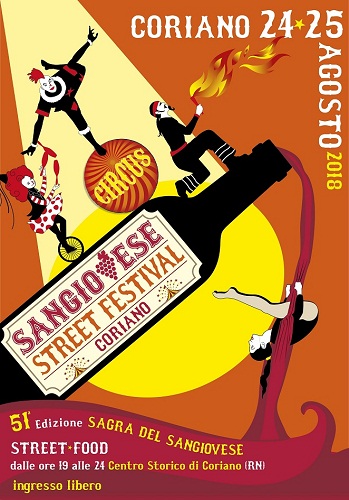 CORIANO (RN) – Sabato 25 agosto a Coriano seconda ed ultima serata della terza edizione del Sangiovese Street Festival 2018.