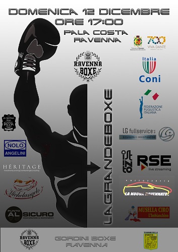 RAVENNA – La manifestazione, patrocinata dal Comune di Ravenna e organizzata da Ravenna Boxe in collaborazione con Porto Fuori Boxe Team Musella e Gordini Boxe Ravenna, si svolgerà domenica 12 dicembre al Pala Costa a partire dalle ore 17.00. Questa manifestazione coinvolgerà pugili provenienti da tutta Italia, che si sfideranno sul ring in una decina di incontri.
