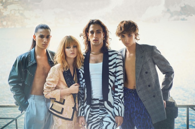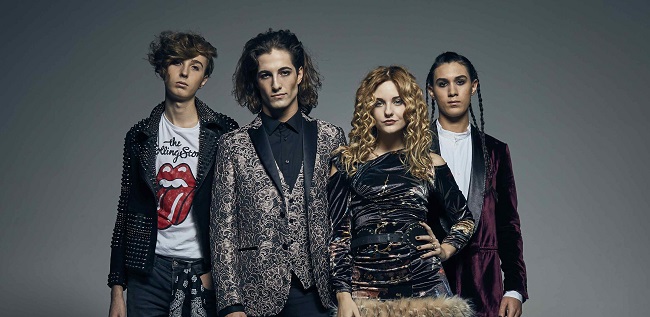 I Måneskin – nome danese che significa “chiaro di luna” – nascono a Roma nel 2015 e sono quattro ragazzi giovanissimi capitanati dal carismatico Damiano David, affiancato da Victoria De Angelis, la bassista diciottenne che suona da quando ne aveva otto. Completano la band Thomas Raggi, alla chitarra, ed Ethan Torchio, classe 2000, alla batteria.