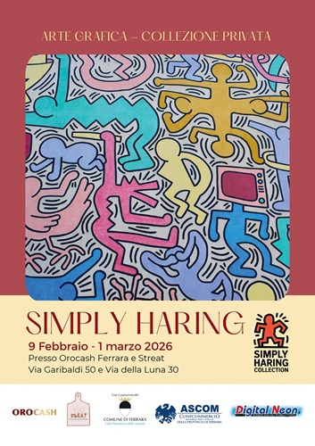 FERRARA – Due negozi del centro diventano sede di esposizione di opere di Keith Haring. È intitolata “Simply Haring” l’iniziativa che vede protagoniste le attività commerciali per la mostra di opere del famoso artista americano Keith Haring provenienti da una collezione privata. L’idea dei commercianti ferraresi di mettere in mostra opere – oltre una quarantina di litografie, multipli, poster e copertine originali di dischi – le renderà visitabili da lunedì 9 febbraio a domenica 1 marzo 2026 sulle pareti di ‘Oro Cash’ in via Garibaldi 50 e da ‘Streat taglieri e bicchieri’ in via della Luna 30 a Ferrara. Le mostre dentro alle attività commerciali sono a ingresso libero per tutti i clienti, cittadini e visitatori con orario dalle 10 alle 18.