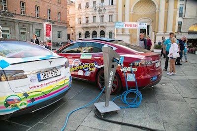 PARMA – Ha fatto tappa per la prima volta a Parma l’Electric Marathon 2016, il rally annuale di elettromobili, giunto alla sua quinta edizione, che attraversa l’Europa da Leopoli in Ucraina, fino a Montecarlo. Tanti i curiosi che in piazza Garibaldi hanno osservato le auto legate alla competizione tra cui alcuni modelli di Tesla P85D ModelS e Chevrolet Volt. Ad accoglierli il sindaco, Federico Pizzarotti, e l’assessore all’ambiente e mobilità, Gabriele Folli, che hanno assegnato i diplomi relativi alla classifica della tappa parmigiana. La maratona di auto elettriche è partita il 22 maggio scorso da Leopoli in Ucraina, ha attraversato l’Europa dell’est, per giungere in Svizzera. La tappa odierna, Bellinzona – Parma, proseguirà con la partenza nella mattinata di domani, alle 11, sempre da piazza Garibaldi, alla volta di Bologna, per toccare anche Pisa e Larderello e Mentone, e concludersi il 3 giugno a Montecarlo.