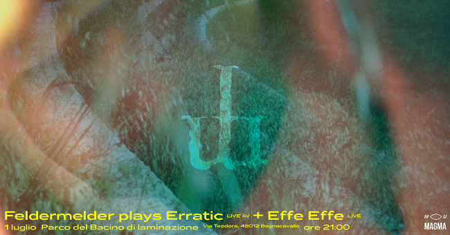 Nel cuore del parco del Bacino di laminazione di Bagnacavallo, venerdì 1 luglio verrà presentata l’installazione audio-visiva ERRATIC a cura di Manuel Oberholzer, in arte Feldermelder, performer e storico produttore musicale svizzero, attivo nel campo del sound design, live electronics e installazione multimediale. A esibirsi durante la serata ci sarà anche Federica Furlani, in arte Effe Effe, che metterà in stretta relazione lo strumento da lei stessa suonato, la viola, e l’elaborazione elettronica.