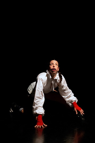 «Rifuggendo il didascalico – prosegue Giulia Spattini – e cercando di unire la storia antica e il contemporaneo in un gesto universale che permetta allo spettatore di riconoscere il proprio tratto personale e di intravedere nelle pieghe della storia un po’ del proprio vissuto, la relazione coreografica, spaziale e intenzionale tra i due corpi coinvolti in scena, è costruita come un’equazione dove Elisabetta/lottatrice ha uno sguardo esposto e l’allenatore/coscienza ha lo sguardo coperto e allena e prepara Elisabetta all’assunzione di responsabilità».