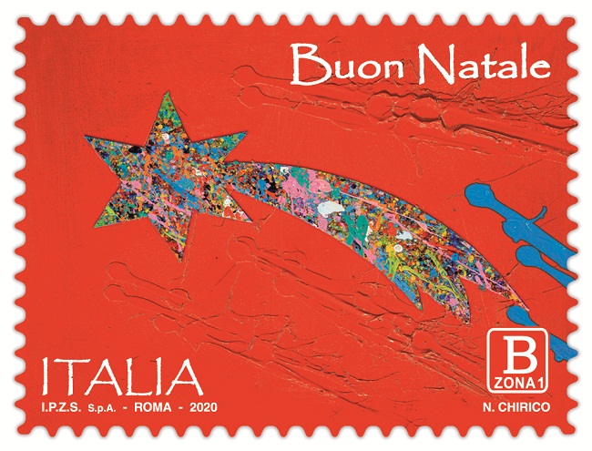 Completano il francobollo la leggenda “BUON NATALE” la scritta “ITALIA” e l’indicazione tariffaria “B ZONA1”