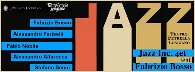 Giovedì 28 dicembre (ore 21.30) il Teatro ospita l’appuntamento Jazz Inc. feat. Fabrizio Bosso. L’ensemble italiano dei Jazz Inc (Alessandro Fariselli al sassofono, Alessandro Altarocca al pianoforte, Stefano Senni contrabbasso, Fabio Nobile alla batteria) sarà insieme ad un ospite d’eccezione, il trombettista Fabrizio Bosso.