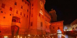 Presepe sull’acqua nel fossato del Castello Estense questa sera a Ferrara