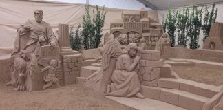 Tanti curiosi per vedere gli artisti della sabbia all’opera con gli...
