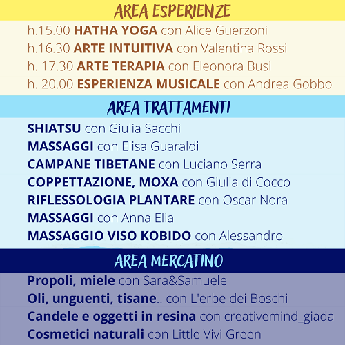 CREVALCORE (BO) – Il 4 settembre è in programma OLI DAY, la seconda edizione del nostro festival olistico (organizzato da Il Giardino dei Sensi, un’associazione di promozione sociale con sede a Casoni di Crevalcore) per permettere l’ingresso a tutti abbiamo deciso di mettere l‘ingresso e tutti i trattamenti e le esperienze ad offerta libera e consapevole.