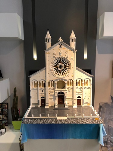 Il prospetto della Cattedrale in ottomila mattoncini all’ufficio turistico fino a inizio febbraio