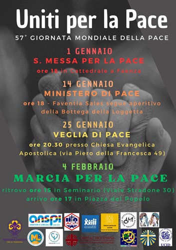 Le iniziative culmineranno domenica 4 febbraio con la “Marcia per la pace” cittadina. Il ritrovo è fissato alle ore 15 presso il Seminario (Viale Stradone 30 a Faenza).