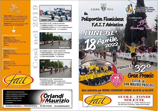 BOLOGNA – Dopo due anni di stop, torna lunedì il GP Città di San Mauro Pascoli. È l’edizione numero 32, e corrisponde alla prima organizzazione stagionale da parte della Fiumicinese Fait Adriatica. Manifestazione, come da tradizione posizionata nel giorno successivo alla Pasqua.