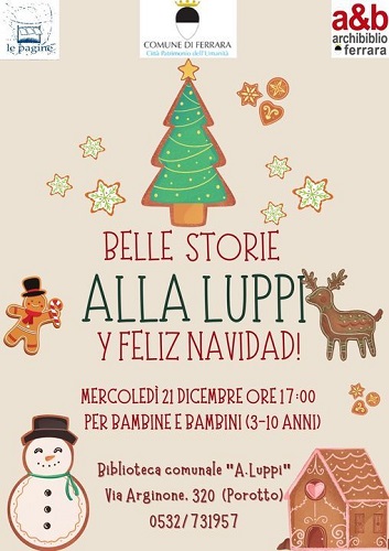 FERRARA – Appuntamento con le letture in spagnolo per i più piccoli mercoledì 21 dicembre 2022 alle 17 alla biblioteca comunale Aldo Luppi di Porotto (via Arginone 320, Ferrara). La bibliotecaria Chiara proporrà ai bambini e alle bambine partecipanti alcune storie natalizie, in lingua spagnola. Il pomeriggio proseguirà poi con un piccolo laboratorio creativo.