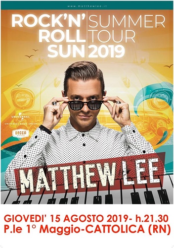 CATTOLICA (RN) – Serata di festa per il Ferragosto cattolichino, giorno apice della stagione turistica. Il Comune di Cattolica, per cittadini e vacanzieri, ha organizzato un evento unico con il pianista di fama internazionale Matthew Lee ed il grande spettacolo dei fuochi artificiali. Matthew Lee torna dopo un anno in Romagna con il suo tour “Rock’n’Roll Sun”, versione estiva e rivisitata di “Piano Man Live”. L’evento gratuito si svolgerà in Piazza I° Maggio dalle 21.30. Il concerto è un coinvolgente e trascinante viaggio nel mondo musicale di Matthew Lee, dove convivono la musica classica, il pop, il rock, il soul, lo swing, il country, il blues, la melodia, la canzone d’autore ed altro ancora, un caleidoscopio di stili e generi reinventati e amalgamati dall’inconfondibile “rock’n’roll touch” di Matthew Lee. Con il pianista sul palco saliranno e si esibiranno Frank Carrera (chitarra), Alessandro Infusini (basso elettrico) e Matteo Pierpaoli (batteria).