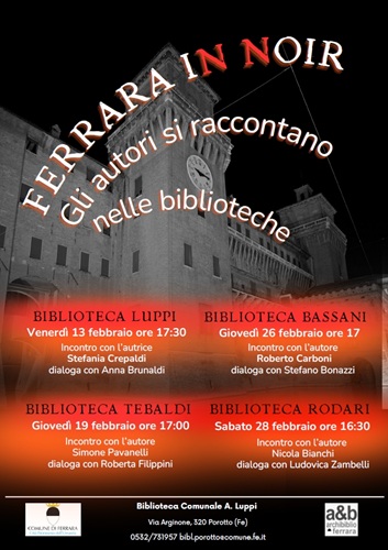 Le biblioteche comunali ferraresi propongono una rassegna dedicata ad autori rappresentativi del genere giallo/noir, con incontri e presentazioni che si terranno a partire dal mese di gennaio fino ad aprile 2026.