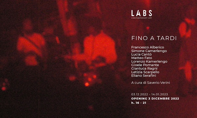 BOLOGNA – Sabato 3 dicembre 2022 LABS Contemporary Art è lieta di presentare Fino a tardi, mostra del collettivo SenzaBagno, a cura di Saverio Verini. Per la prima volta, le opere dei componenti del collettivo – Francesco Alberico, Simone Camerlengo, Lucia Cantò, Matteo Fato, Lorenzo Kamerlengo, Gioele Pomante, Gianluca Ragni, Letizia Scarpello, Eliano Serafini – sono riunite in un unico ambiente espositivo, manifestando affinità e divergenze, ma soprattutto mettendo in scena le dinamiche che “regolano” la costruzione di una mostra collettiva, tra accordi e conflitti.