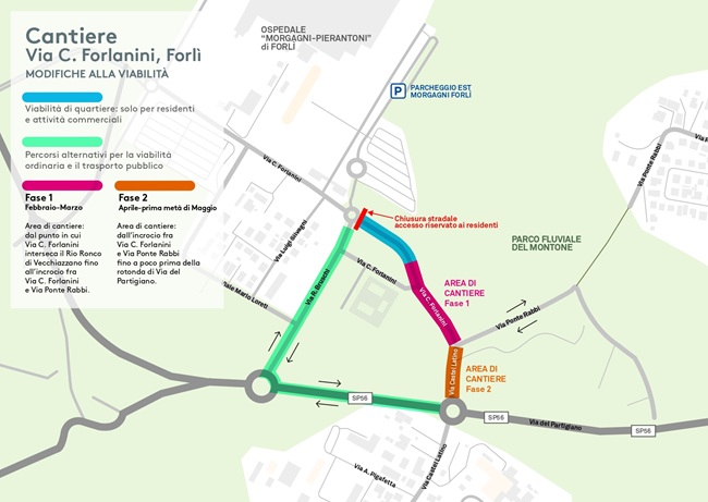 Il tratto di via Carlo Forlanini compreso tra la rotatoria Partigiano/Forlanini/Castel Latino (rotatoria Maria Biondi) e la rotatoria Bruschi/Forlanini sarà interdetto al transito dei bus. Tutte le linee urbane interessate utilizzeranno il percorso alternativo via Bruschi–via del Partigiano, in entrambi i sensi di marcia.