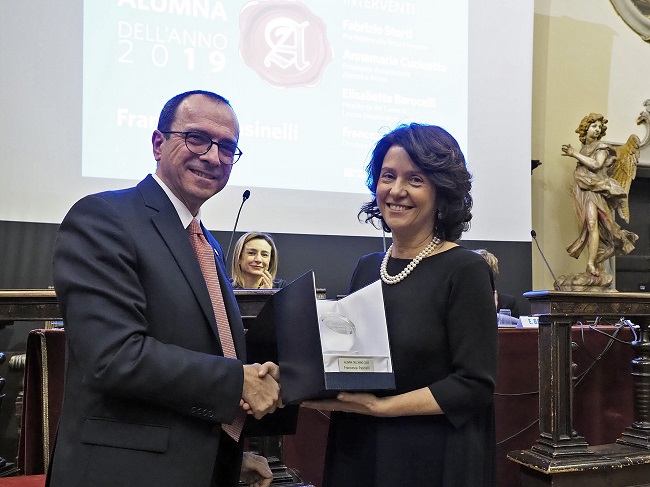PARMA – L’albo d’oro degli “Alumni dell’anno” dell’Università di Parma si arricchisce di un nuovo nome prestigioso: è Francesca Pasinelli, Direttore Generale della Fondazione Telethon, insignita del premio Alumna dell’anno 2019. La cerimonia si è svolta ieri pomeriggio nell’Aula dei Filosofi, dove Francesca Pasinelli ha ricevuto dal Pro Rettore alla Terza Missione Fabrizio Storti il riconoscimento istituito lo scorso anno dall’Ateneo e dall’Associazione Alumni e Amici dell’Università di Parma, presieduta oggi da Annamaria Cucinotta, per rendere omaggio ai laureati che si siano particolarmente distinti nel loro percorso professionale.