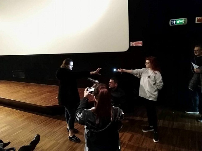 Dopo la visione del film Perez ha mostrato ai ragazzi come con pochi strumenti, anche banali (una pila, un phon….), e rapidamente, si possono produrre effetti speciali, una dimostrazione che ha molto appassionato e divertito gli studenti che sono stati anche protagonisti diretti di alcune prove.