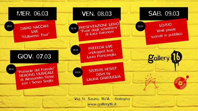 BOLOGNA – Gallery16 è lo shop di dischi, libri e il cocktail bar che vi aspetta con una programmazione sempre ricca di eventi live, presentazioni, djset e molto altro.