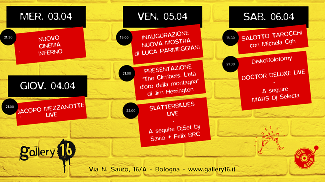 BOLOGNA – Gallery16 è lo shop di dischi, libri e il cocktail bar che vi aspetta con una programmazione sempre ricca di eventi live, presentazioni, djset e molto altro.