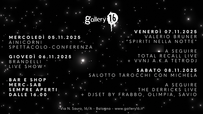 BOLOGNA – Gallery16 è lo shop di dischi, libri e il cocktail bar che vi aspetta con una programmazione sempre ricca di eventi live, presentazioni, djset e molto altro.