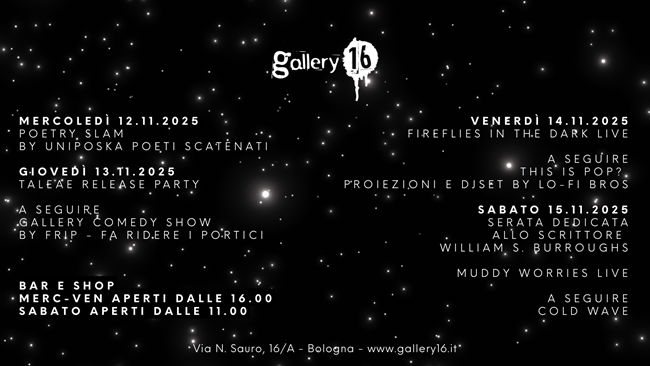 BOLOGNA – Gallery16 è lo shop di dischi, libri e il cocktail bar che vi aspetta con una programmazione sempre ricca di eventi live, presentazioni, djset e molto altro.