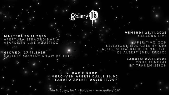 BOLOGNA – Gallery16 è lo shop di dischi, libri e il cocktail bar che vi aspetta con una programmazione sempre ricca di eventi live, presentazioni, djset e molto altro.
